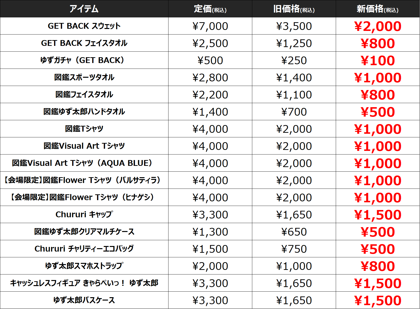 4月10日(金)18:00より過去のツアーグッズや貴重なアイテムを特別価格でお届けしている「クリアランス」商品がさらにお得な新価格で販売を開始いたしました。